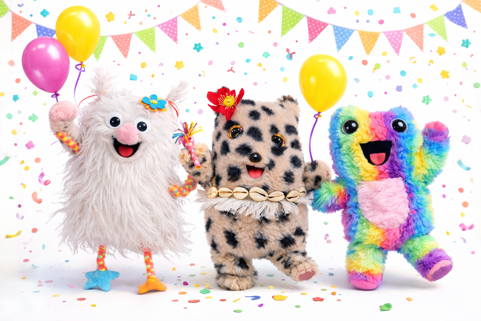 De leukste fluffy knuffels die je op je feestje kan maken.