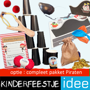 Het Piraten kooppakket is een aanvulling op het downloadbare Piratenfeestje. Met dit pakket maak je het spel nog leuker, spannender en levensecht! Het is super handig omdat je alle benodigdheden voor de spellen krijgt, je hoeft zelf dus niks meer te kopen! Voor de kinderen is het ook leuk dat ze een ‘herinnering’ mee naar huis kunnen nemen. Dit optioneel kooppakket is dus echt een aanrader!