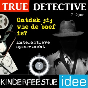 Voor € 19,95 een leuk True Detective speurtocht feestje (voor max. 12 personen) Plaats in de winkelmand!