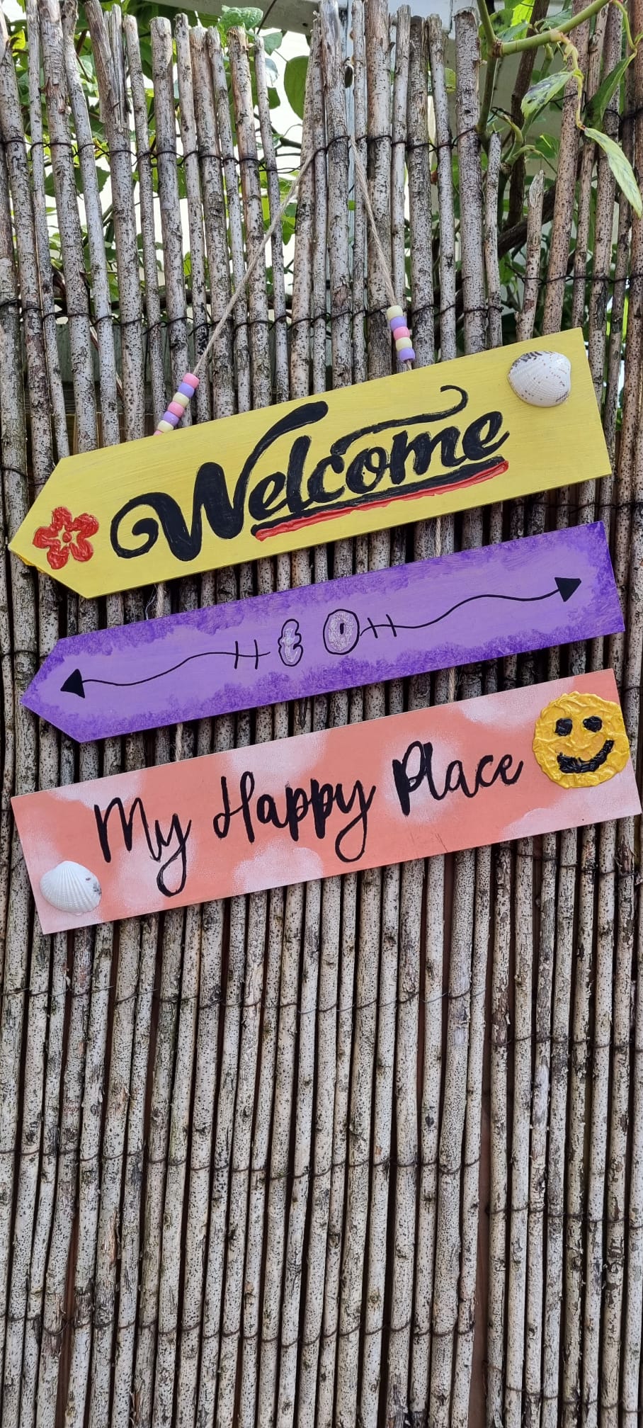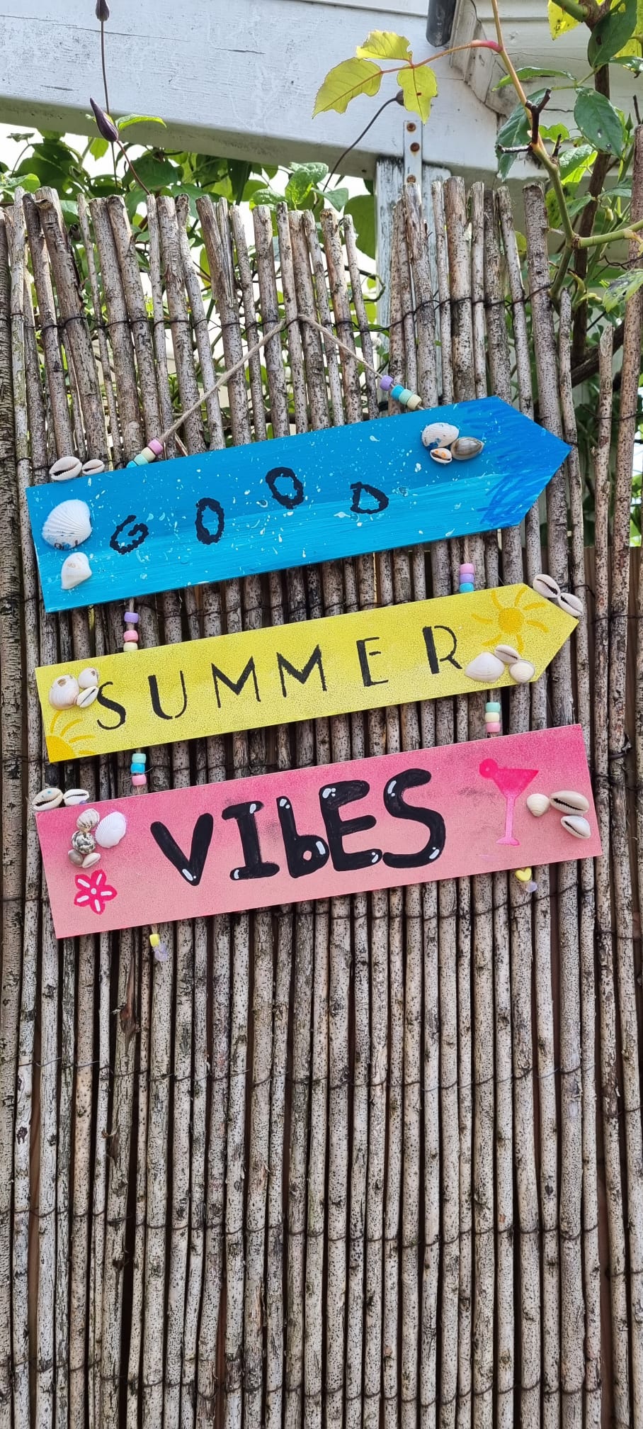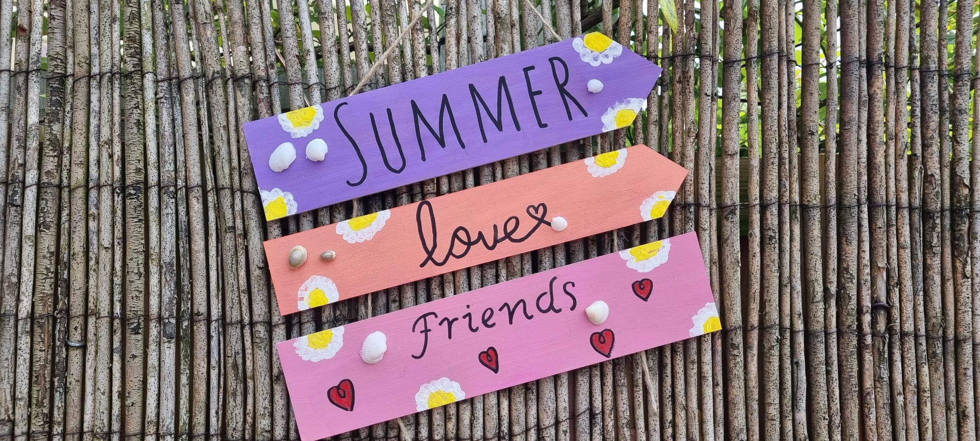 Je krijgt 3 plankjes hier kun je ibizastyle wegwijzer van maken. We gaan de plankjes eerst schilderen en als de verf zo goed als droog is gaan we er teksten op maken. De teksten en tekeningen bepaal jij uiteraard helemaal zelf. De teksten en tekeningen maak je erop met behulp van carbon papier of je tekent te teksten en tekeningen zelf. Wij sturen je verschillende lettertypen en plaatjes die je hiervoor kunt gebruiken. Als de letters en tekeningen op de plankjes ga je ze inkleuren met acryl verf en voor de afwerking ga je aan de slag met 3D verf dit geeft een super gaaf effect op jouw Ibizastyle wegwijzer.