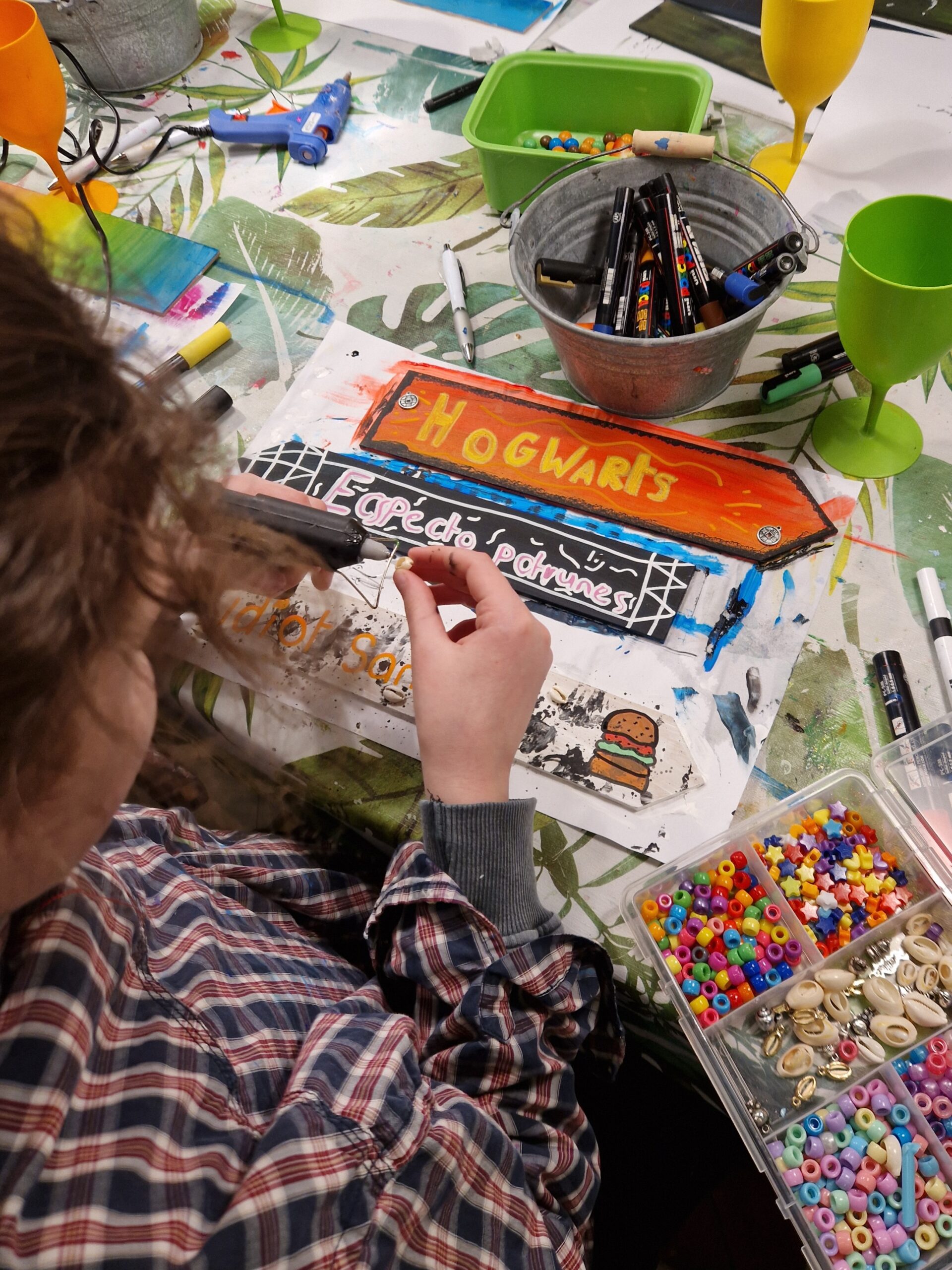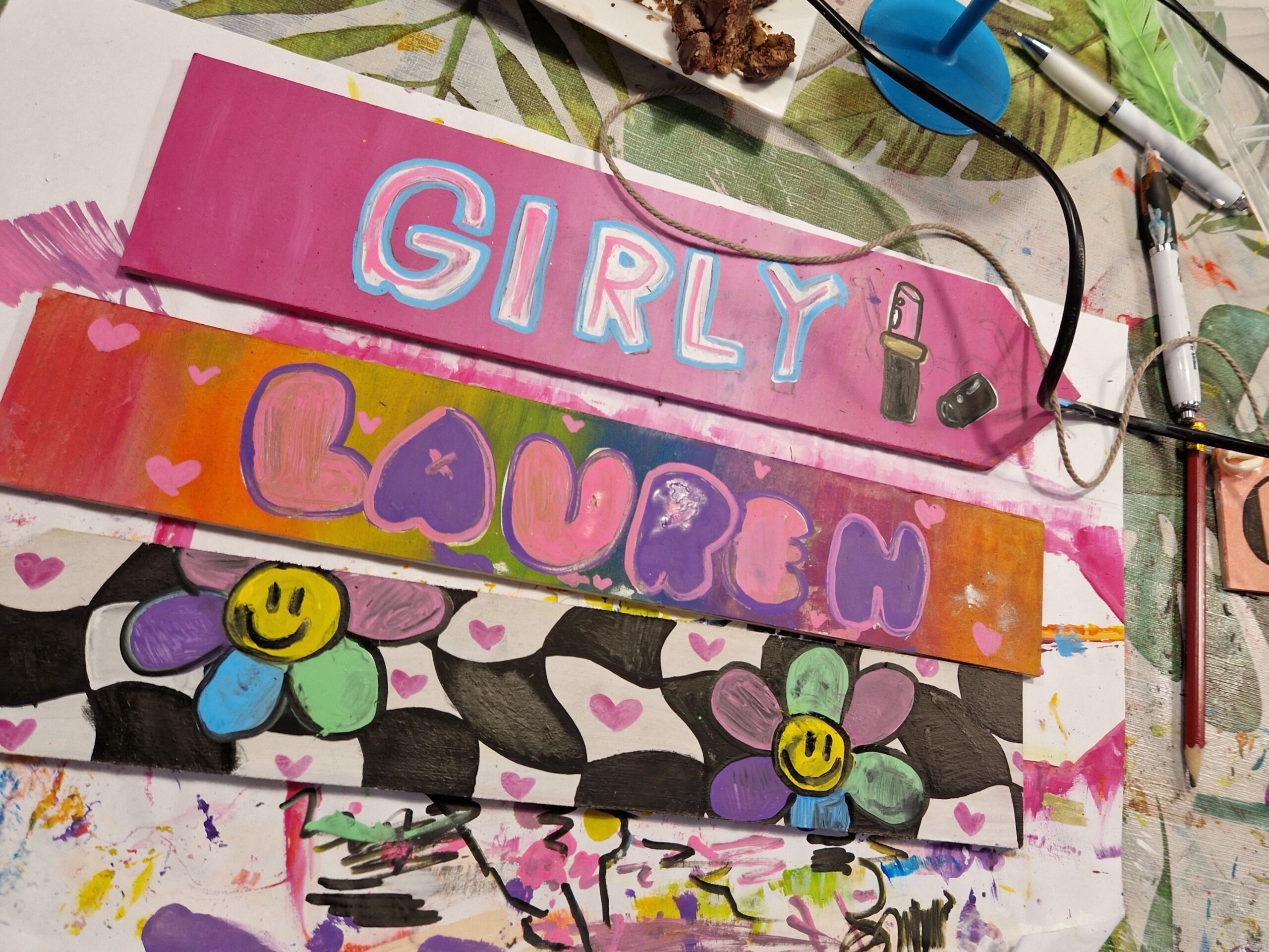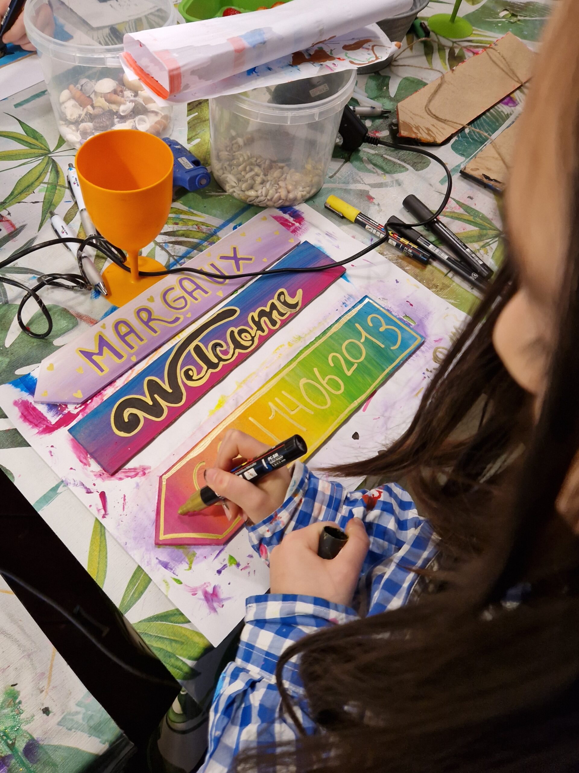 Als alle plankjes af zijn gaan we ze aan elkaar bevestigen met touw en misschien wil je er nog kraaltjes bij zodat jij ze thuis mooi kan ophangen.